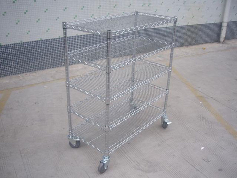 1、結構獨特:采用碳鋼鍍鉻網片及支柱組合而成,開放式的設計,令儲物品一眼可見;